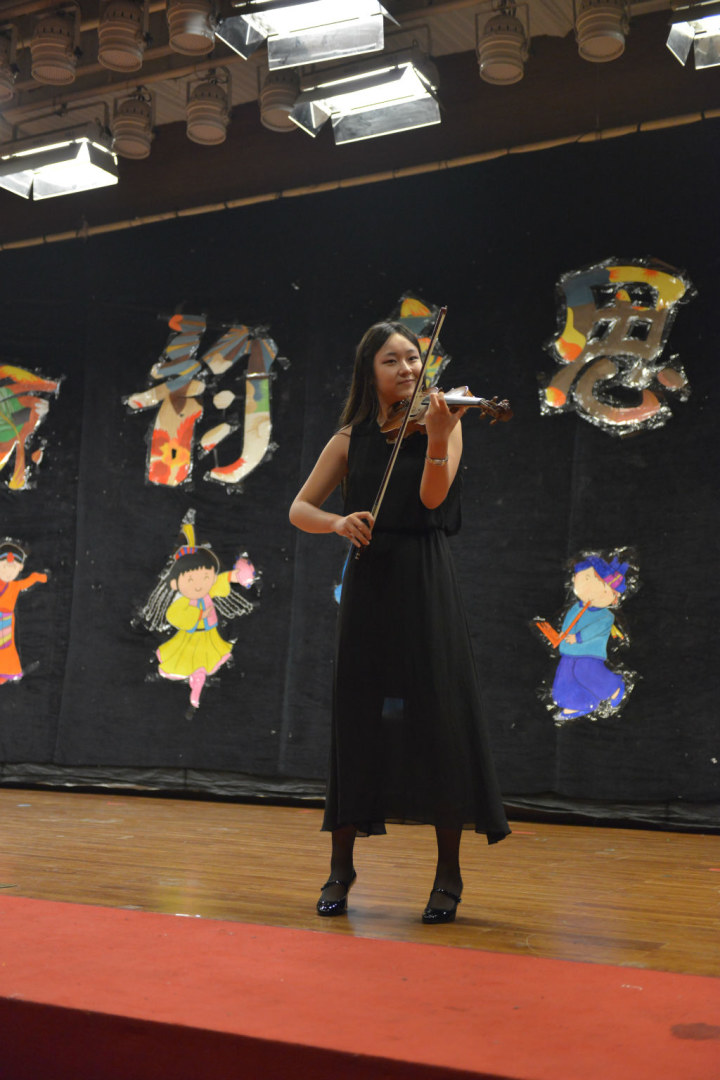 柔和的灯光来回摇曳,整个会场升腾起优雅的艺术气息。一曲小提琴独奏《新疆之春》时而舒缓,时而激昂,时而活泼,时而深沉,时而银屏乍破水浆迸,时而幽咽泉流冰下难。透过优雅的表演者和她的小提琴,观众仿佛能看见新疆的春天,流水淙淙,姹紫嫣红。繁华过后,房产14的新生带来风琴独奏《英雄史诗》,同时银幕上出现了将士们艰苦斗争的真实记录。他手指上下翻飞自如,虽然台上只有他一人,听起来却像一支乐队的合奏,雄浑激昂,犹如万马奔腾,让人心潮澎湃,热血沸腾。当所有人都激情高涨的时候,一首深情的诗歌朗诵又将思绪带到无边无际的青青牧场,在那里,清澈的月光下马头琴在孤独地吟唱,广阔的草原上成群的骏马在自由地驰骋,湛蓝的天际几朵浮云在悠闲地游走。