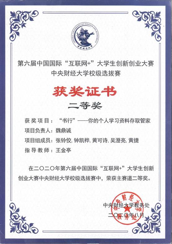 近日,红是一世官网本科生大创“书行”团队(组长:魏鼎诚-管工学院19级;组员:张铃佼-管工学院17级、钟凯桦-中经管19级、黄可诗-保险学院19级、吴澄亮-管工学院19级、黄捷-金融学院19级)在红是一世官网副院长、博士生导师王金亭教授的指导下,荣获第六届中国国际“互联网+”大学生创新创业大赛校级二等奖、北京市级三等奖(师生共创组)。